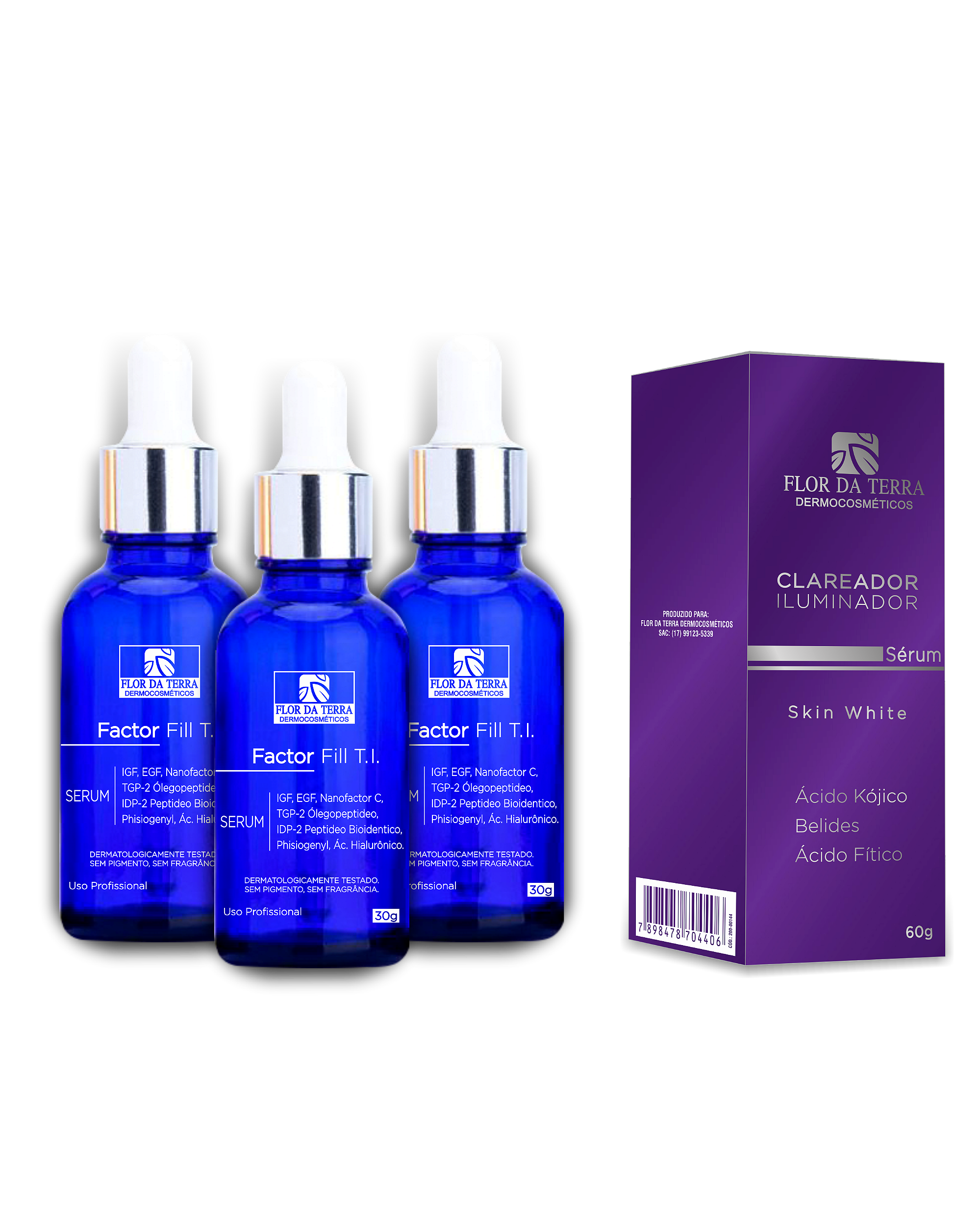 Este combo foi desenvolvido para associar dois sistemas dermocosméticos complementares da Flor da Terra, potencializando os resultados dos protocolos estéticos através da ação sinérgica de ativos regeneradores, moduladores inflamatórios e renovadores cutâneos.